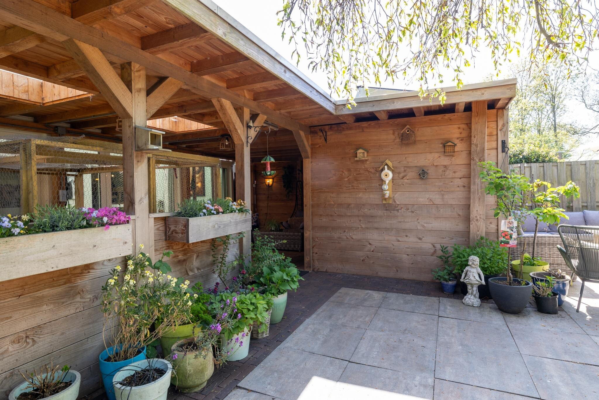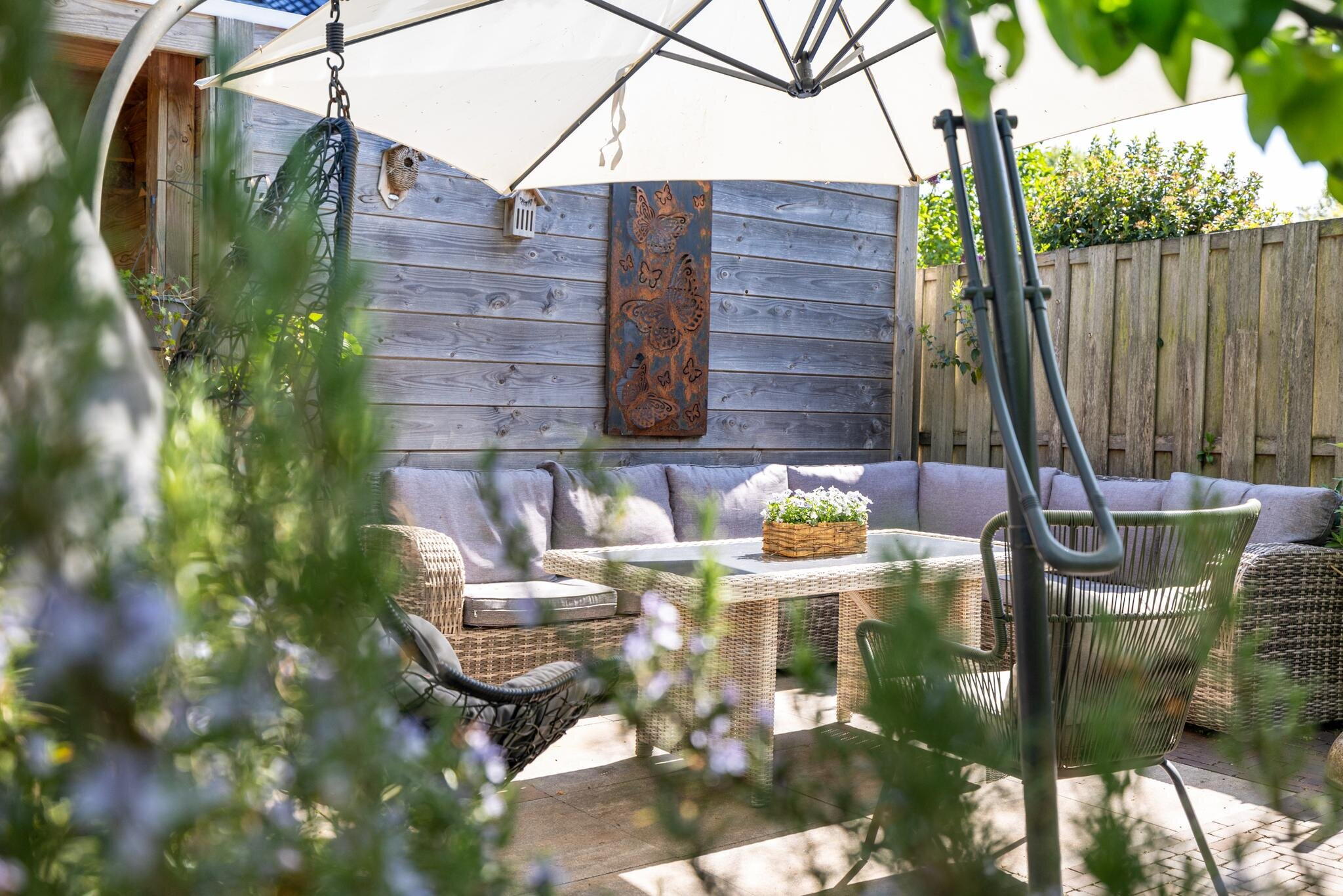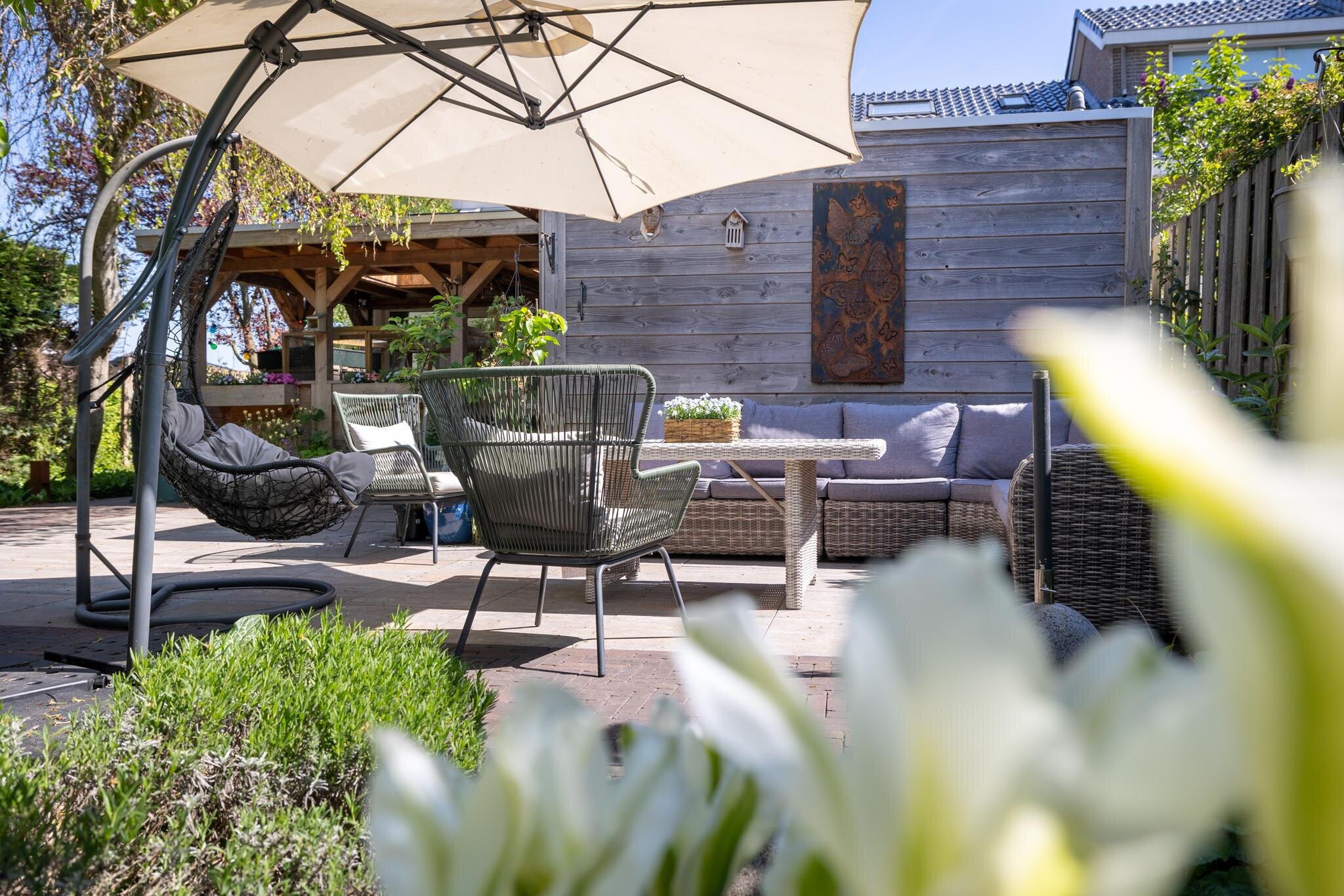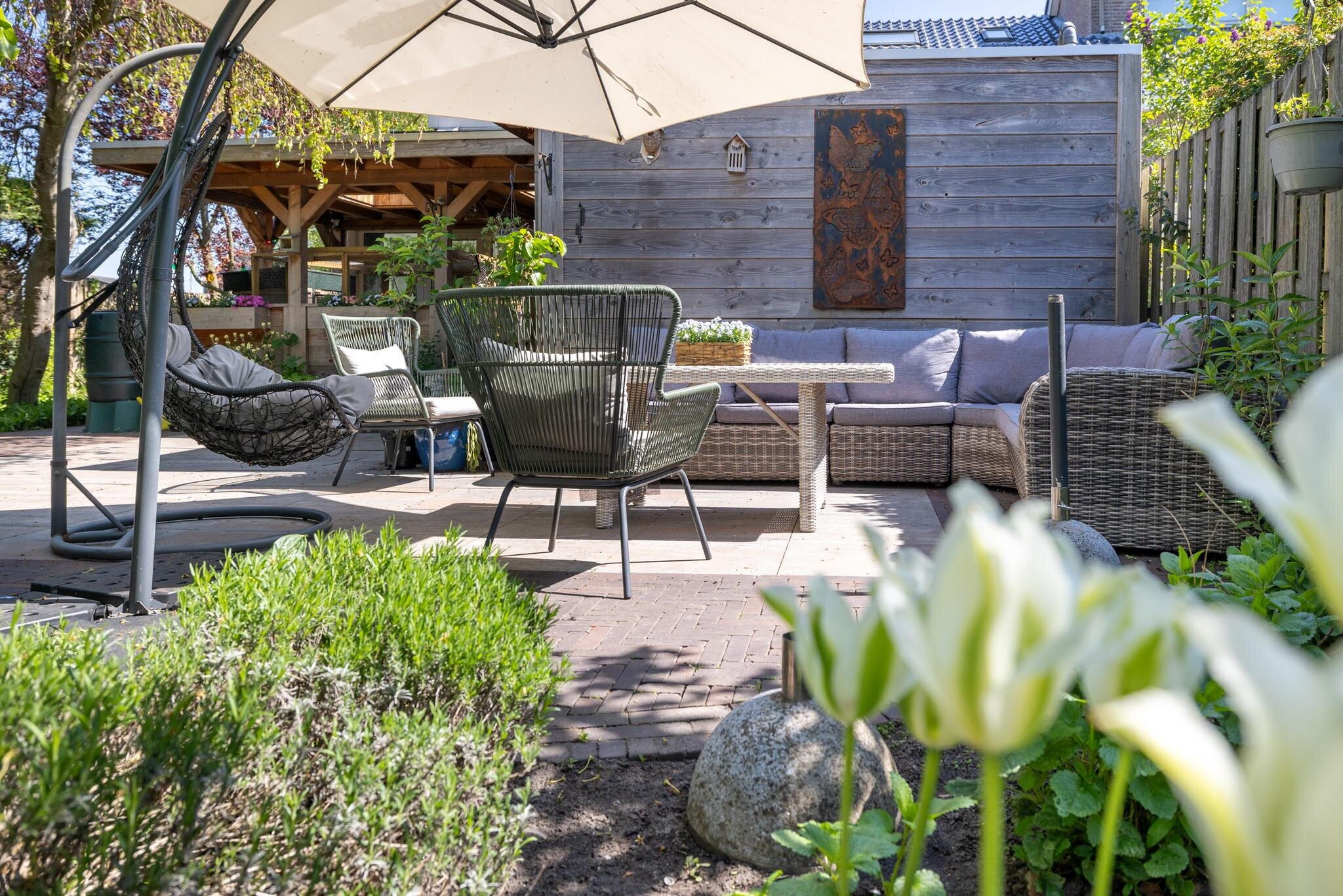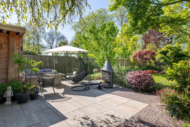Kom je hier wonen, is het zowel binnen als buiten Genieten: door de grote van het perceel heerst hier rust en privacy in de tuin op het zuiden. De veranda (inclusief heaters) zorgt ervoor dat je jaarrond van de tuin kunt genieten. De tuin biedt veel zon, maar ook schaduwhoekjes: achterin de tuin is het goed toeven in hete zomers onder de schaduw van de bomen en de overdekte zithoek. Op het terras aangrenzend aan de veranda kun je dan weer heerlijk zonnebaden.
