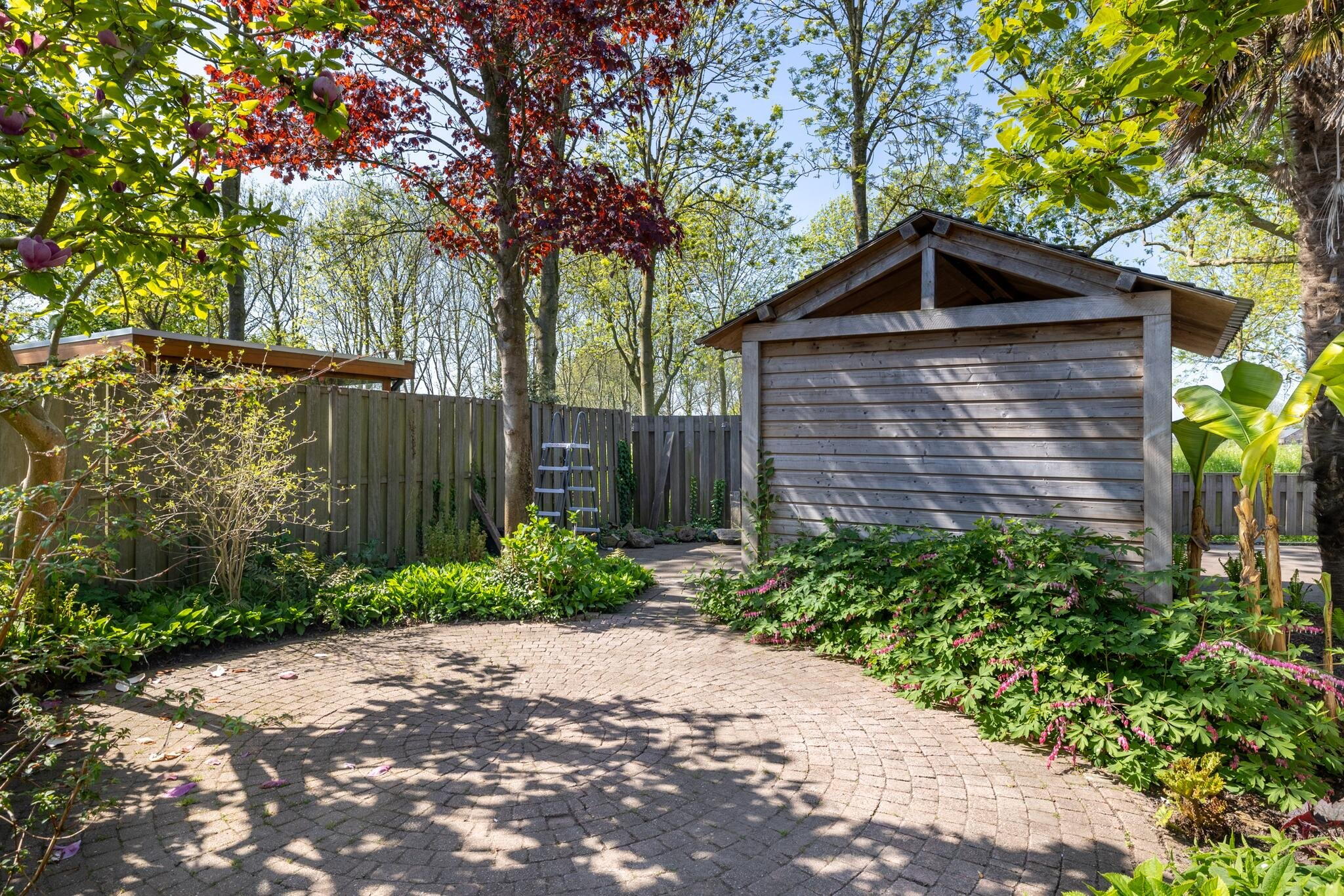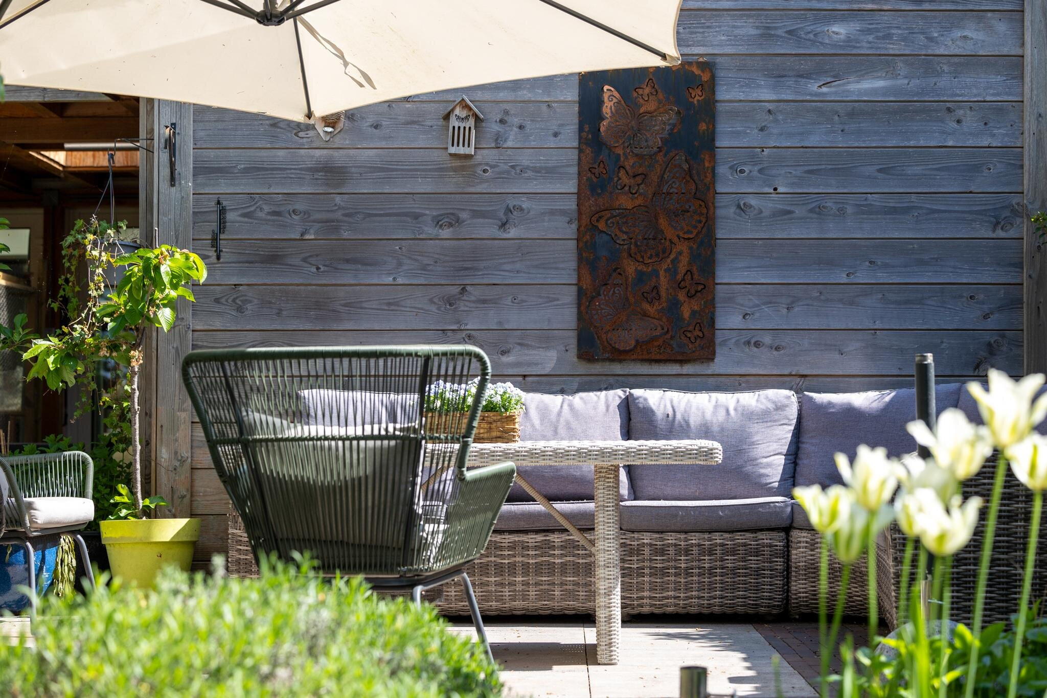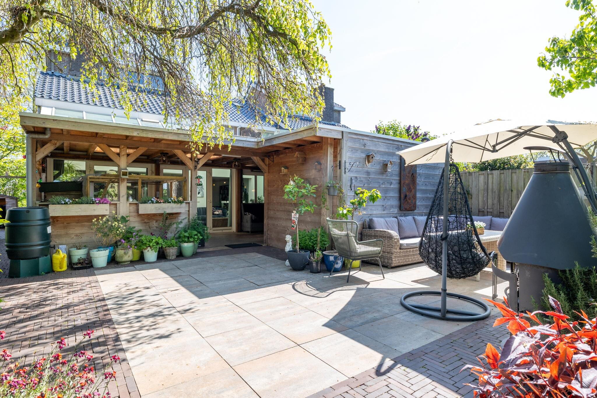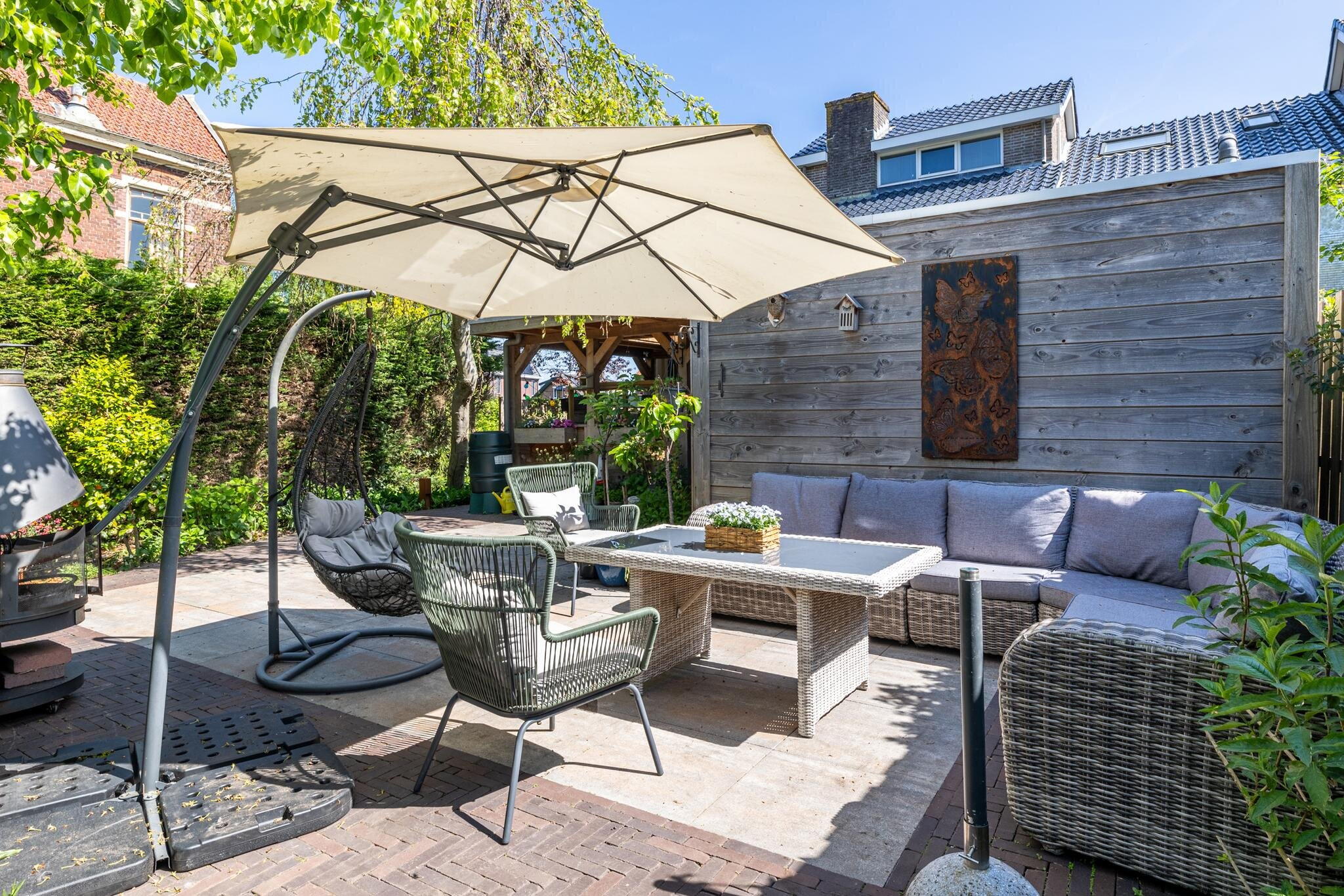 Kom je hier wonen, is het zowel binnen als buiten Genieten: door de grote van het perceel heerst hier rust en privacy in de tuin op het zuiden. De veranda (inclusief heaters) zorgt ervoor dat je jaarrond van de tuin kunt genieten. De tuin biedt veel zon, maar ook schaduwhoekjes: achterin de tuin is het goed toeven in hete zomers onder de schaduw van de bomen en de overdekte zithoek. Op het terras aangrenzend aan de veranda kun je dan weer heerlijk zonnebaden.
