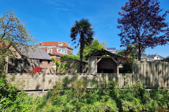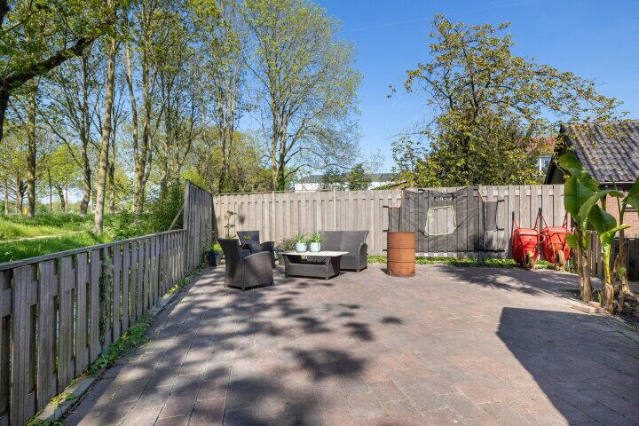 Achterin de tuin is er een overdekt zithoek aanwezig. Vanaf het perceel is er weids uitzicht over het polderlandschap.